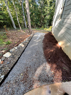 This inviting property features a modern farmhouse-style home with a wraparound porch and thoughtful landscaping that enhances its charm. Curved concrete pathways, mulched garden beds, and a lush green lawn create a welcoming approach, while tall trees frame the home in natural serenity. The design balances structure and softness, offering both curb appeal and a peaceful outdoor setting